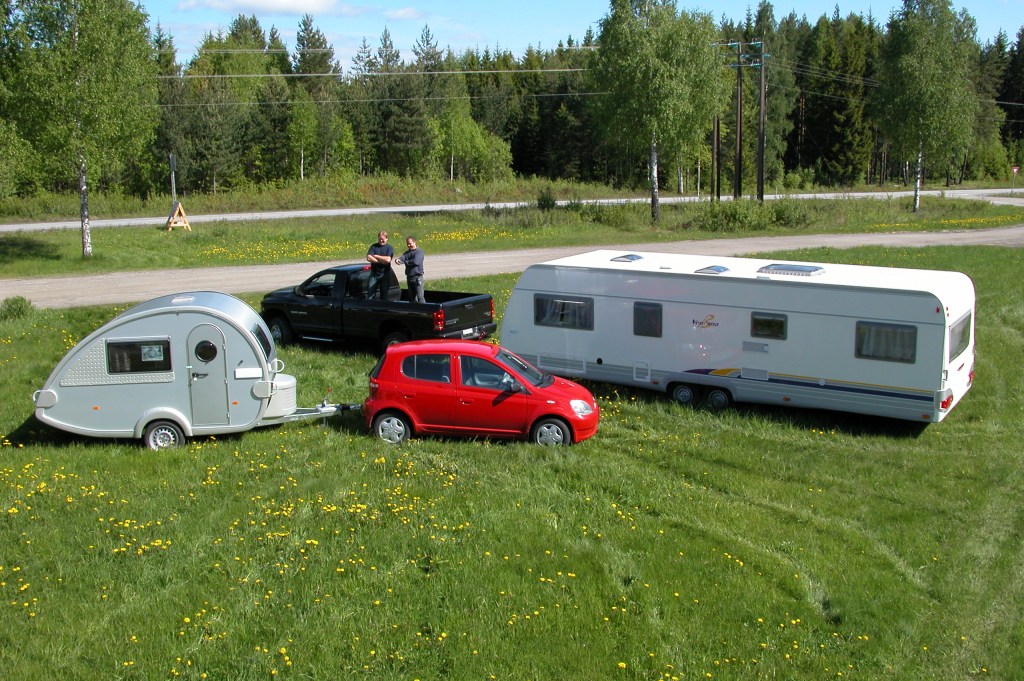 Den minste er jo lekker, da, og kan antagelig funke selv på Yarisen vår. Bak en Dodge Ram får du glatt en åttemetersvogn.