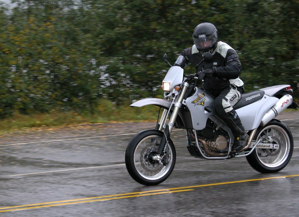 Nei! Motorsykler kan ikke bli for sterke. Ikke til å leke med i hvertfall. Men Highland 950 Motard er for stor og brutal til å hevde seg i et supermotard-konkurransefelt. Likeledes er offroadutgaven for kraftig til å fungere godt i skogen. Men du verden hvor moro, med sladd og bakhjulskjøring over alt. Så lenge man er våken til å takle det. To doble espresso takk!